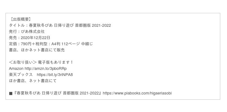 ■『春夏秋冬ぴあ 日帰り遊び 首都圏版 2021-2022』https://www.piabooks.com/higaeriasobi