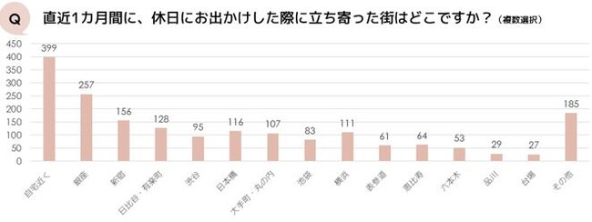 Q、直近一カ月間に、「休日」にお出かけした際に立ち寄った街はどこですか?(複数選択)