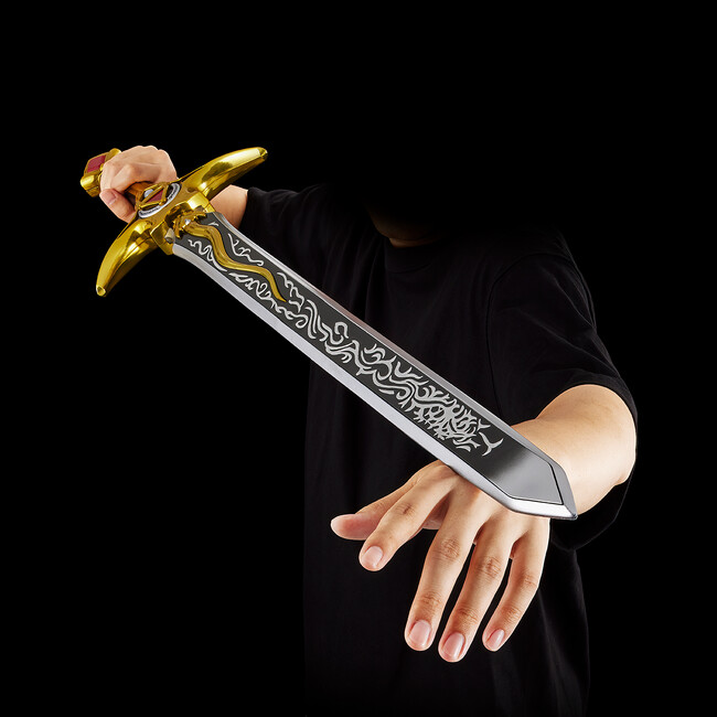 牙狼剣は劇中の資料を元に、雨宮慶太監督監修のもと、驚異の全長約100cmで立体化。重厚感、存在感を際立たせるためグリップ部分にはダイキャストを使用しています。金色部分は金色メッキ塗装や一部クリアパーツを使用し、本編劇中の質感再現を細部まで徹底的に追及。特徴的な剣身の模様はタンポ印刷により精巧に再現しています。