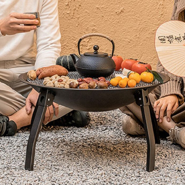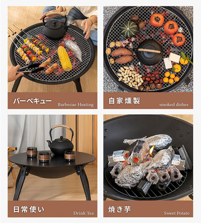 網を外して炭をくべれば焚火をしたり芋をふかしたりすることが可能。