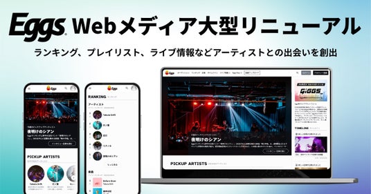 株式会社エッグス(本社:東京都渋谷区、代表取締役:柴崎栄太郎、以下「エッグス」)は、運営する国内最大級の無料インディーズ音楽プラットフォーム「Eggs」のWebメディアトップページを2025年4月2日(水)に大型リニューアルしました。