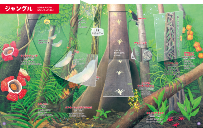 「しょくぶつ」では、200種以上の植物を紹介。しかけまどをあけると、植物の驚きの姿に出合えます。