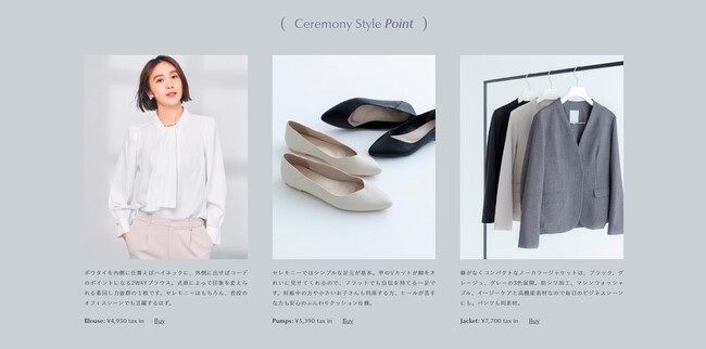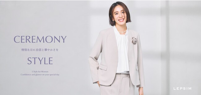 レプシィムのセレモニーシリーズは、きちんと感や華やかさを演出するだけでなく、ストレッチの効いた着心地やお家で洗えるお手入れの簡単さなど機能面も充実。スタイルアップするデザインにもこだわり、特別な日をより素敵に過ごしていただけるための工夫が詰まったアイテムをラインアップしました。初めてセレモニーシーンを経験する方のために、公開中の特設WEBサイトではおすすめのセレモニーコーディネートだけでなくマナーやアイテムを選ぶ際のポイントを掲載し、アイテム選びのお手伝いをします。