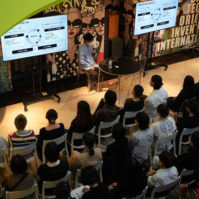 O0uのブランド理念や、生産背景、サプライチェーン、マーチャンダイジングに関するセミナーを開催し、エスモード ジャポンの全学生に受講していただきました。このセミナーを通じ、学生のみなさんはブランドへの理解を深め、アップサイクル商品の製作イメージを具体化していきました。