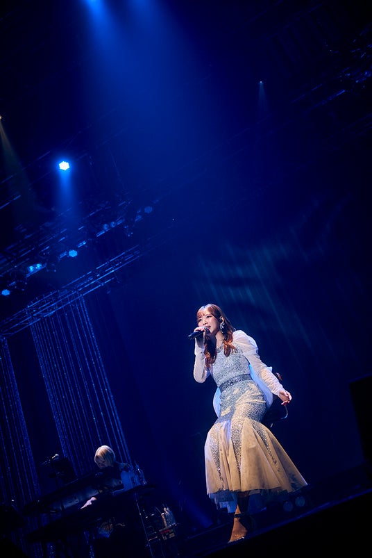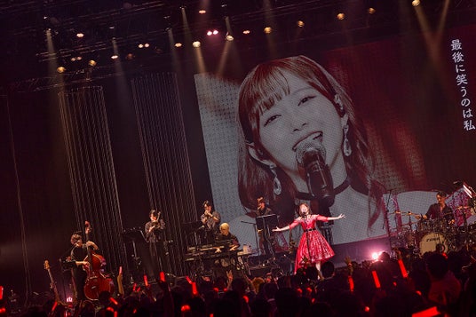 幕間映像後、真っ赤なドレスの衣装にチェンジし、アルバムのリード曲である「解放」を披露。ブラスバンドも加わりライブのボルテージはさらにあがり、続く「wake up」とあわせて力強い歌声で会場を盛り上げる。