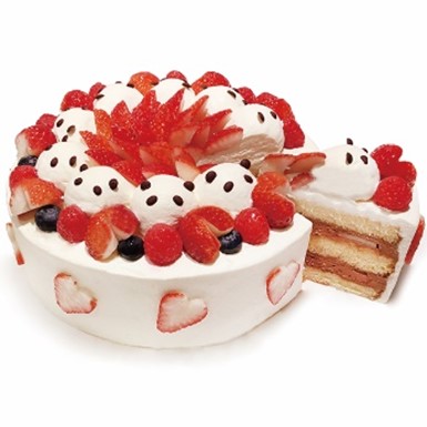 いちごとベリーをふんだんに使用し、パンダをモチーフにしたショートケーキに仕上げました。