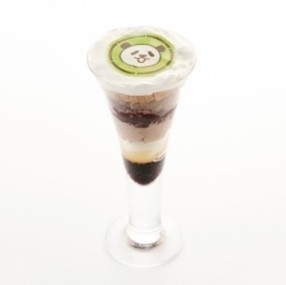 チョコアイスとコーヒーゼリーを使用したパンダパフェ。お好みで別添えのオレンジリキュールをかけてお召しあがりください。