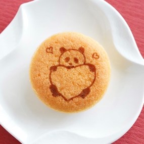 ハートを抱えたパンダのイラスト入りのフィナンシュタイプの洋生菓子。