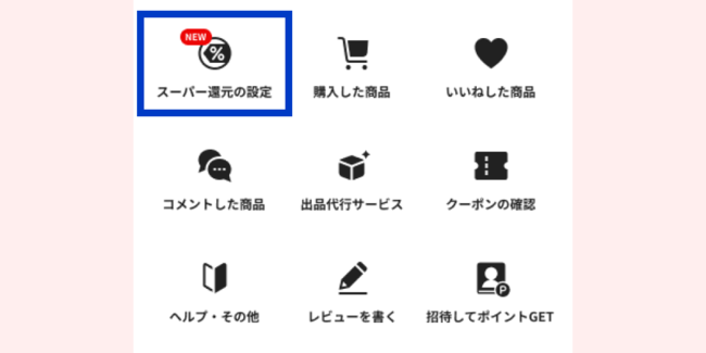 ※アプリ版はマイページ内に「スーパー還元の設定」アイコンが表示されるユーザーが対象(8月3日時点)。8月末までに全ての出品者が利用可能