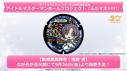 『ふたマス!!!!!!』第6弾「新潟県長岡市」に設置予定となる「浅倉 透」(「アイドルマスター シャイニーカラーズ」)のマンホールデザインと設置情報を本日公開いたしました!