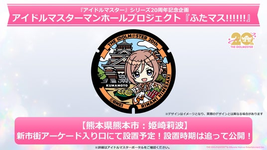 『ふたマス!!!!!!』第5弾「熊本県熊本市」に設置予定となる「姫崎莉波」(「学園アイドルマスター」)のマンホールデザインと設置場所を本日公開いたしました!