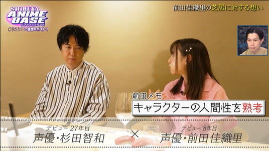 続いて、番組内の人気コーナー『カプカプトーク』では、前回に引き続き、声優の杉田智和さんと前田佳織里さんが美味しい寿司とお酒を楽しみながら、お芝居のこだわりやこれからの未来について赤裸々なトークを繰り広げました。