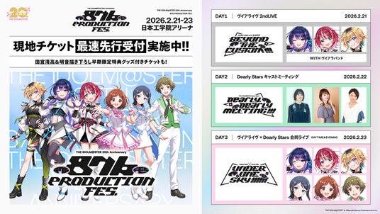 株式会社バンダイナムコエンターテインメントは2026年2月21日(土)~23日(祝・月)の3日間、日本工学院アリーナにて、『アイドルマスター』シリーズ20周年記念として「876 PRODUCTION FES.」を開催いたします。