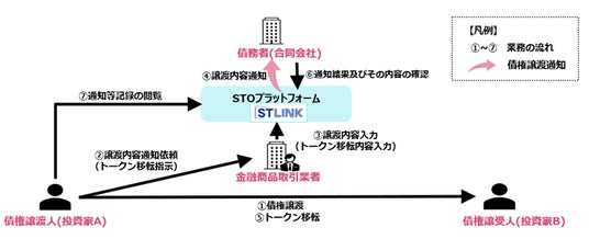 現在、GK-TK※1等の一部のST譲渡では、二次流通時の債権譲渡における第三者対抗要件の具備に伴う、内容証明郵便の送付や確定日付証書の取得といったアナログな事務手間がネックとなっています。今回の実証実験では、TISが提供する「STLINK」において、STの譲渡に必要となるこれらの事務手続きをデジタル完結させるスキームの有用性を検証します。その後、産業競争力強化法による認定新事業活動実施者の認可および第三者対抗要件のデジタル具備を実装した「STLINK」のサービス提供開始を目指します。