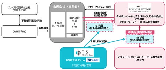 今回の実証実験は2025年6月2日に開始し、TISがSTの発行・移転・管理業務を包括的に担うプラットフォーム「STLINK」を提供、タッチストーン・キャピタル・マネージメントが「STLINK」において、本実証実験の対象となるST移転における譲渡の実証を担います。
