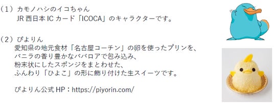 西日本旅客鉄道株式会社が発行するICカード「ICOCA」の公式マスコットキャラクターである「カモノハシのイコちゃん」と、ジェイアール東海フードサービス株式会社が販売する名古屋の人気スイーツ「ぴよりん」のコラボレーション商品を、2024年9月に第一弾、10月に第二弾を発売し皆さまには大変ご好評いただき、誠にありがとうございます。