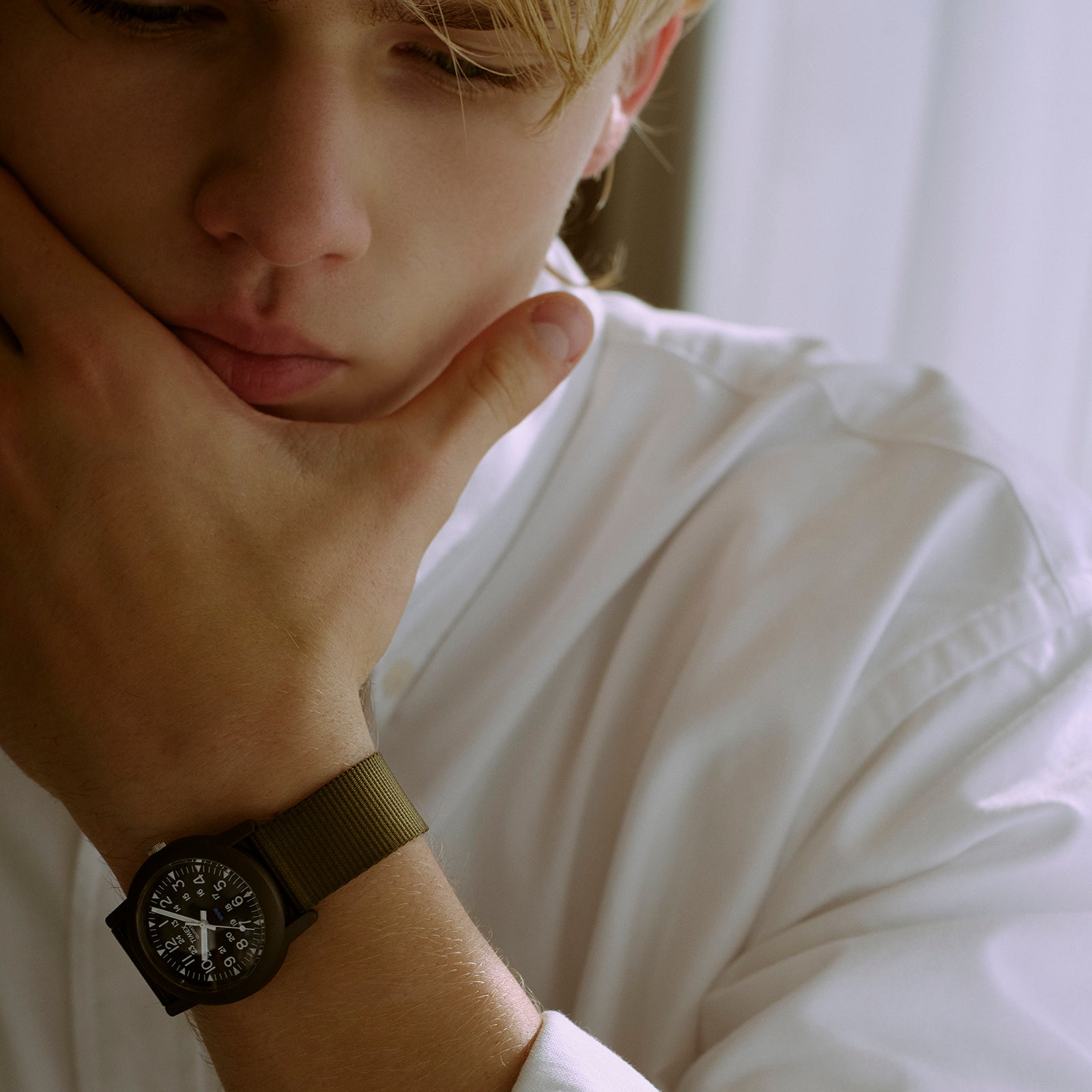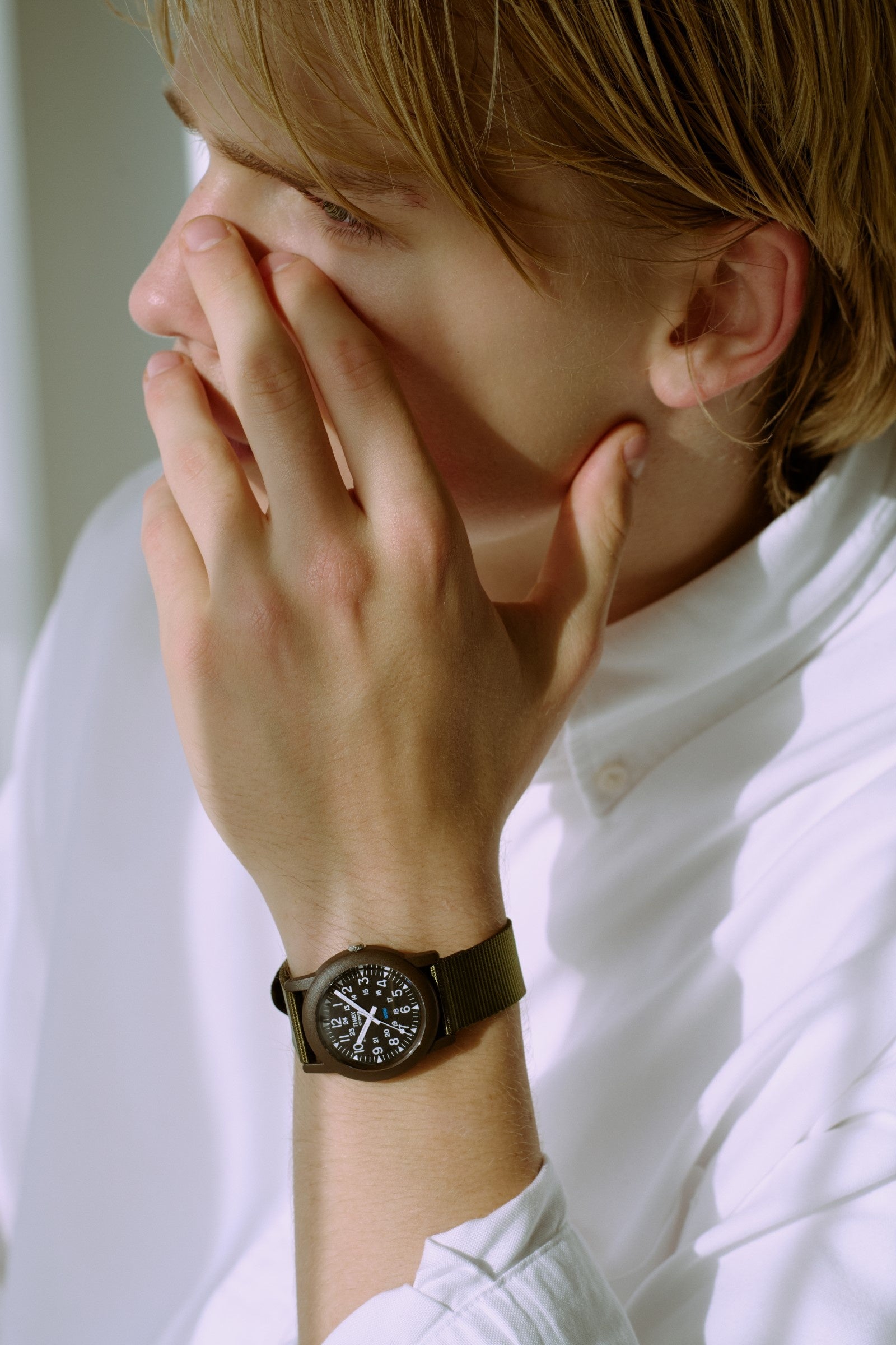 径34mmと小粒の「第2世代キャンパー」は、持ち前のタフネスを踏襲しつつシンプル&フランクなデザインを纏った、いわばアーバナイズされたミリタリーウォッチです。