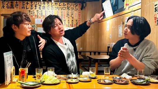 はっとりの登場に驚きを隠せない小宮と共に、テーマソング制作を巡る爆笑トークと高円寺や音楽への熱い想いが語られます。当初は戸惑いを見せていたはっとりが、平子と小宮の熱意に押され、「四文屋」名物の強烈なお酒「金宮梅割り」を飲みながら熱い話をした結果、テーマソング制作へ期待が高まっていく様子の一部始終をお届けします。