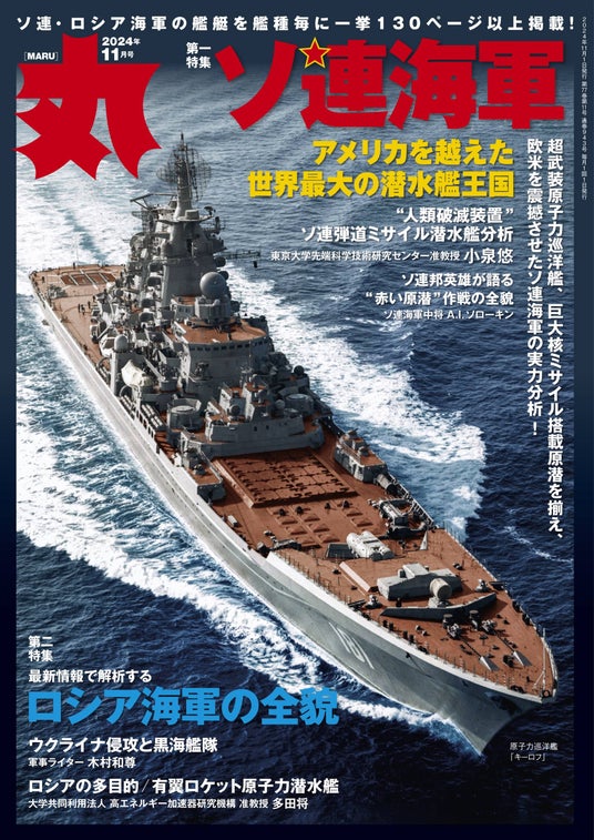 産経新聞グループの潮書房光人新社は、戦史に学ぶ人のミリタリー総合誌、月刊『丸』11月号を発売しました。特集は「ソ連海軍」。冷戦期、西側諸国の最大の脅威であった弾道ミサイル搭載の戦略原子力潜水艦をはじめ、日本周辺に頻繁に出没した航空母艦、強力な武装をもった原子力巡洋艦などの情報が満載です。第二次大戦から現代までソ連・ロシア海軍の内実を小泉悠氏、多田将氏ら論客が詳しく解説します。発掘手記はソ連海軍中将が語る原潜作戦の全容。グラビアはソ連艦艇の迫力フォトが盛りだくさんです。