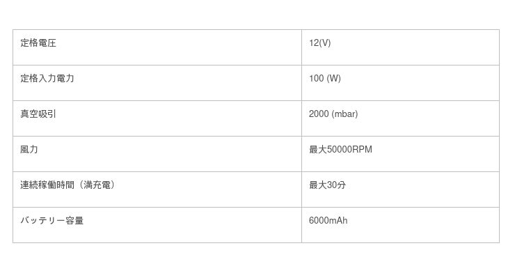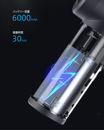 6000mAhの大容量バッテリーを内蔵し、フル充電で連続稼働時間は最大30分間です。