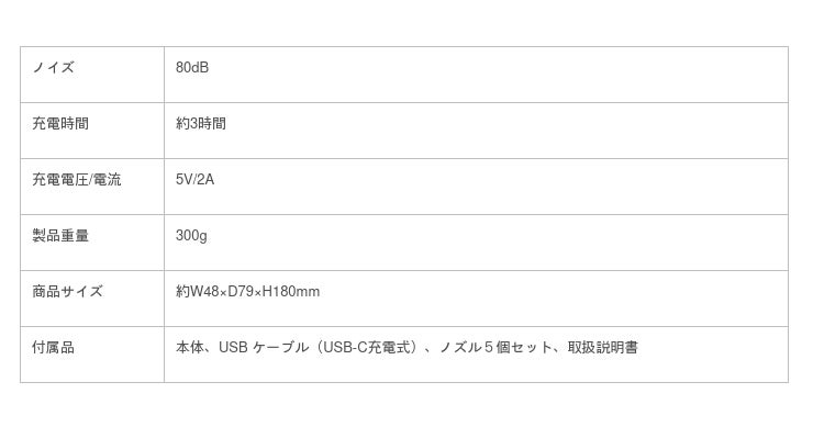 50000RPMの大きな風力/100W/USB-C充電式/LEDライト搭載
