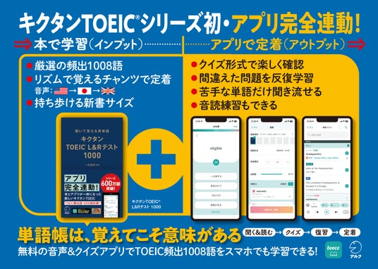 株式会社アルク(東京都品川区 代表取締役社長:田中 伸明、以下アルク)より、新刊書籍『キクタンTOEIC(R) L&Rテスト 1000』のご案内を申し上げます。