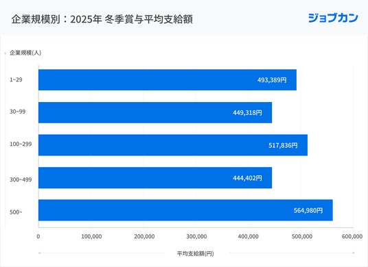 ▼2025年 企業規模別 冬季賞与平均支給額