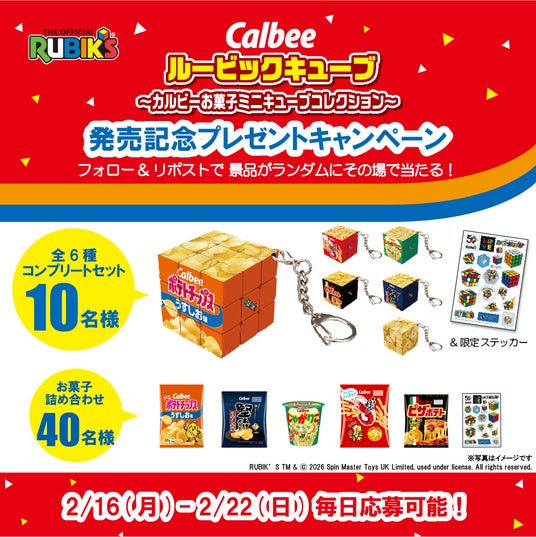 カルビー株式会社(本社:東京都千代田区、代表取締役社長兼CEO:江原 信、以下カルビー)と、株式会社メガハウス(本社:東京都千代田区、代表取締役社長:佐藤 明宏、以下メガハウス)がコラボレーションした玩具『Calbeeルービックキューブ~カルビーお菓子ミニキューブコレクション~』が、2026年2月下旬より全国のおもちゃ売り場で発売されます。また、「じゃがりこショック!!ミニ」も同時発売いたします。なお、これらの商品はいずれもメガハウスが販売元です。