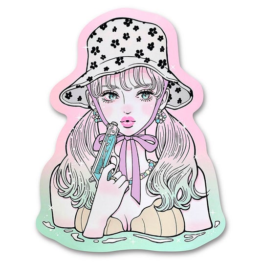 70年代SF少女漫画をアイデアソースとした「RED EYES」や「ESP」シリーズ、浮世絵美人画のサンプリング、サンリオとのコラボシリーズ、日本のカワイイ文化を圧縮した「DECORUME」シリーズ、キラキラマークに抽象化した「GINGIRAGIN」シリーズなど、それぞれのパーソナリティーを桜花するときめきにあふれたジェンダーワールドを余す所なく表現しています。今回の個展は音楽アルバムで言うところのベスト盤となる個展です。