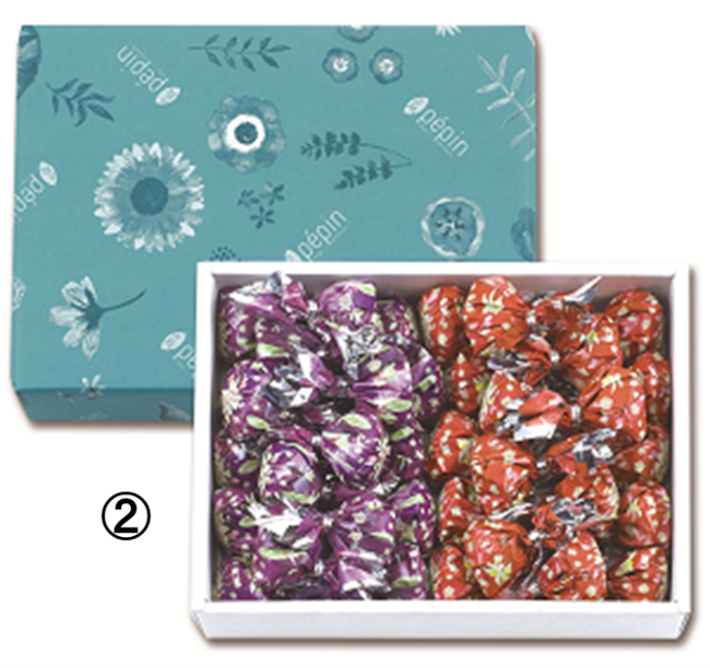 〈ル ペパン〉1.フルール ドゥ ボンボン ブーケ 6本入 648円2.ペパン ドゥ カカオ ギフト 36個入 2,160円 /1階 MAP1.