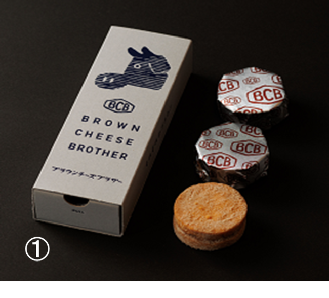 〈BROWN CHEESE BROTHER〉は、牛乳からチーズをつくる過程で大量に出る「ホエイ」を廃棄することなく、おいしく活用するために生まれたブラウンチーズが主役のスイーツブランド。ブラウンチーズの特徴は、コクのある風味と乳酸由来のあまずっぱさ。1.ブラウンチーズの味を活かし、甘ずっぱいブラウンチーズをキャラメルと合わせバターベースのガレットブルトンヌでサンド。サクッほろっ新感覚なクッキーサンド。2.生地にココアを練り込んだほろにがなチョコレート味のガレットとブラウンチーズを合わせた、大人の味。ガレットの甘みやバターの風味に負けない、個性豊かなブラウンチーズの味わいを楽しめるお菓子。