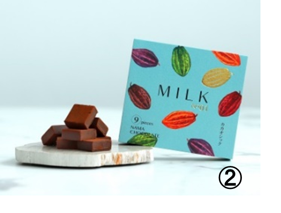 1.空気を含む特別な方法によって作られたふわっとほどける新食感チョコレート。厚みのあるチョコレートとサクサクのラングドシャが重なった、満足感のあるチョコレートサンド。2.カカオの豊かな香りと、ミルクの甘みがバランス良い生チョコレート。ほどよい上品な甘さで、良質なミルクの風味が際立つ、シンプルでコク深い一粒です。