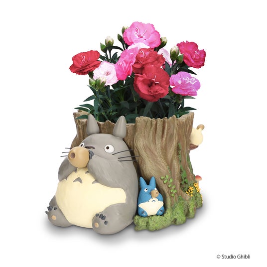 セット内容:となりのトトロ ジオラマボックス 『おおきな切り株』(サイズ:W185×H110×D200mm)、マジカルチュチュ~チェリーレッド~<生花・3.5号鉢>、お花の育て方カード、となりのトトロ オリジナルメッセージカード