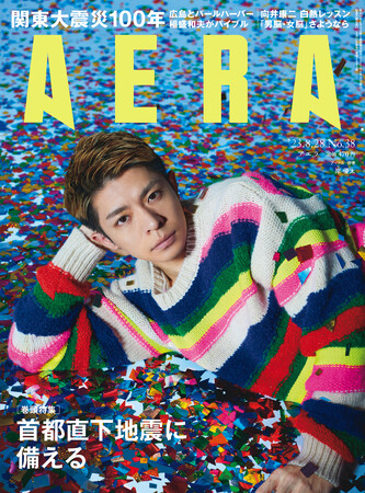 8月21日発売のAERA8月28日号の表紙には岸優太さんが登場します。インタビューでは、初主演映画「Gメン」への思いや、映画のテーマでもある「仲間の大切さ」についてもたっぷり語っています。巻頭特集は「首都直下地震に備える」。今年は関東大震災から100年です。首都直下地震や南海トラフ地震など、迫り来る巨大地震への備えや地震予知を巡る最前線など、多角的に特集しています。京セラを一代で世界的な企業に成長させ、経営破綻した日本航空の再建にも尽力した稲盛和夫さんの逝去から1年。稲盛さんの著作はいまも売れ続け、若い経営者たちからも支持されています。なぜその言葉は響くのか、じっくり考える記事もあります。「男脳・女脳」さようならと題した記事も。ジェンダーバイアスに縛られた言説が飛び交いますが、そこから解き放たれる必要性を訴えています。大好評連載「松下洸平 じゅうにんといろ」は、放送作家の高須光聖さんがゲストの最終回。ほかにも多彩な企画が詰まっています。