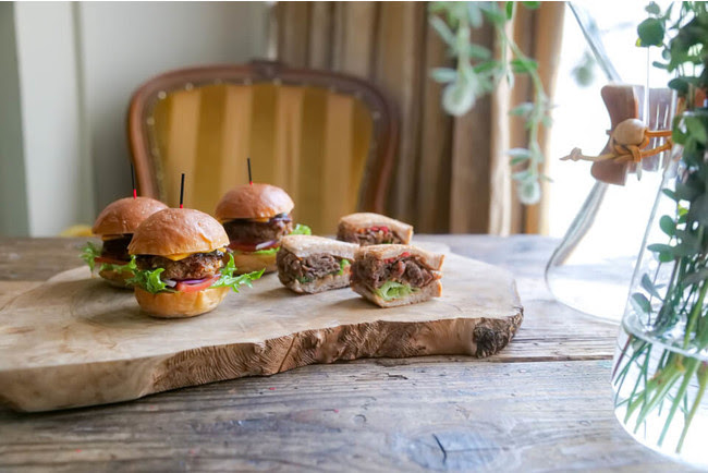 豪華スイーツとともに、 ホテルシェフが手掛けるグルメも必見。 シンプルながらも本格的な味わいの、優しい甘みが食欲をそそる『出汁巻き玉子サンド』をはじめ、ランチタイムのご利用にもぴったりな満足感あるサンドウィッチをご用意。 さらに、 “次世代のお肉”として注目を集める「大豆ミート」を使用した『新東京大豆ミートバーガー』や、 バンズにニューオータニオリジナル八穀米「Jシリアル」を使用した『新東京ライスバーガー』が日替わりで登場。 その他サクサクに揚げた絶品カツを挟んだポークカツサンドやシェフが日替わりでご用意する麺料理など、 塩系グルメもお好きなだけお愉しみいただけます。