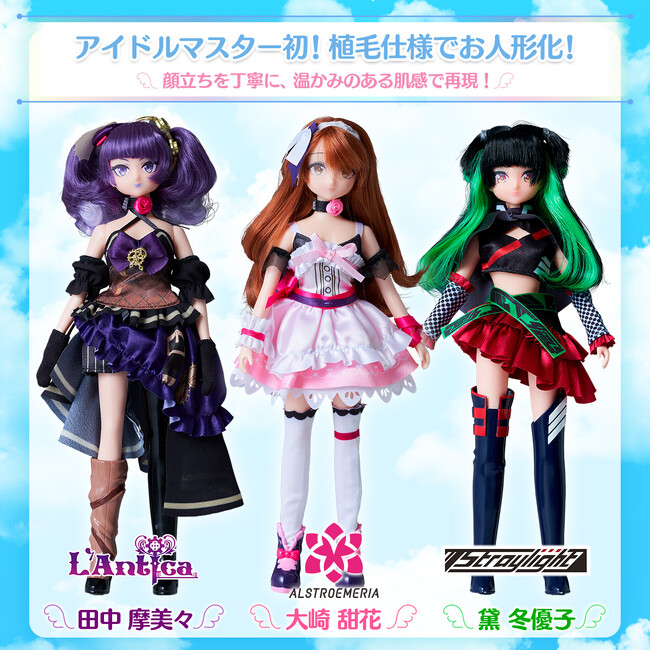 「アイドルマスターシャイニーカラーズ」より、「田中 摩美々」「大崎 甜花」「黛 冬優子」のお人形がDress Up Styleシリーズより登場です。「アイドルマスター」シリーズ初の植毛仕様の人形となります。
