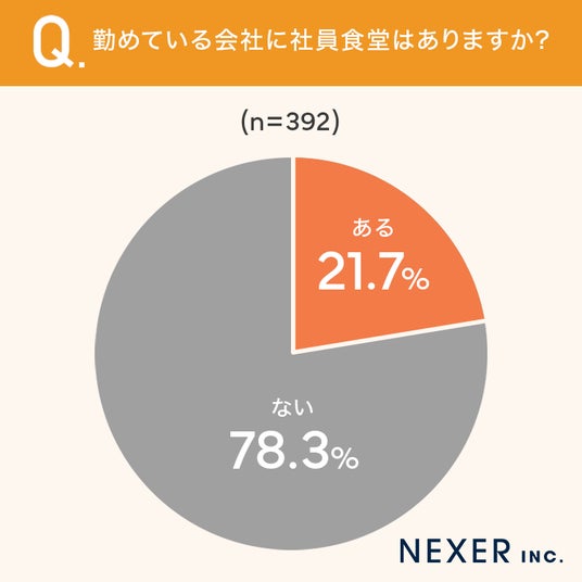 勤めている会社に社員食堂は「ある」と答えた方は、21.7%いました。「ない」方は78.3%と、7割近くいました。