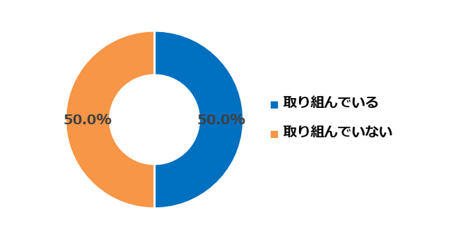 従業員が自身の健康面で気になっていることは、「運動不足」が最多で39.9%。次いで「ストレス」が35.2%、「肥満」が24.2%となり「特に気になることはない」を除くと、約7割が何かしらの健康面に不安を抱えていることが分かる。一方で、企業側が行っている従業員の健康課題解決のための取り組みについて、50.0%の企業が「取り組んでいない」と回答。従業員の多くが健康課題を抱えている反面、課題解決に取り組む企業は多くない状況がうかがえる。【図1、2】
