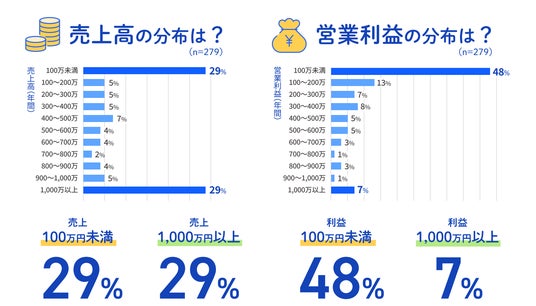 ■年間売上高1,000万円以上が約3割、一方で営業利益は約半数が100万円未満