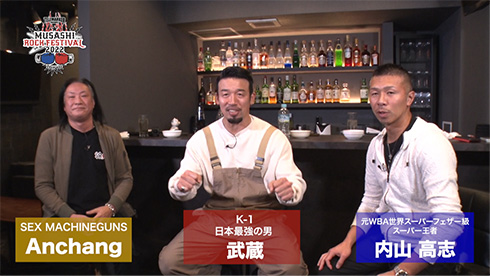 日本随一のヘビー級戦士である「武蔵」が、K-1を引退した2009年に東京・Zepp Tokyoで初開催され、“格闘技×ロック”という過去に類を見ないテーマを掲げるフェス『MUSASHI ROCK FESTIVAL』。このたびの配信では、ヘヴィメタルバンド・SEX MACHINEGUNSなど全5組のアーティストが出演したライブ・ステージと、バトル・ステージでの「麻原 将平vs前口 太尊」「山下 力也vsジャイロ楠」のエキシビジョンマッチの模様をダイジェスト映像としてお届け!さらに、会場を熱狂の渦に巻き込んだ出演者たちのトーク映像はファン必見です。圧巻のライブパフォーマンス、そして、熱い戦いを思う存分お楽しみください。