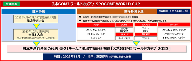 本チームは、2023年10月9日(月祝)に東京都内での開催を予定している、全国47都道府県の予選大会を勝ち抜いたチームが出場する全日本大会「スポGOMI ワールドカップ 2023 日本 STAGE」に出場。2023年11月に日本で開催予定で、日本を含め世界21カ国の代表が集う「スポGOMI ワールドカップ 2023」への出場を目指します。