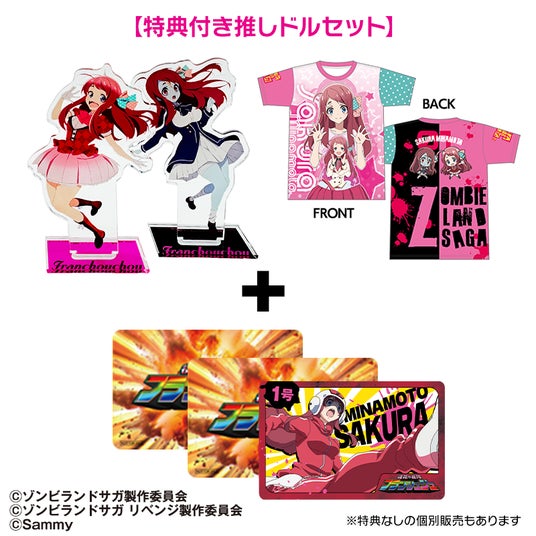 「Pゾンビランドサガ」の特典トレーディングカード付きのアクリルスタンド(2個セット)とフルグラフィックTシャツのセットが登場!