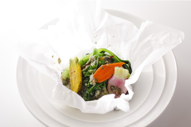 すりおろし野菜ドレッシング、バーニャ・カウダ 西京味噌風、野菜の紙包み焼き