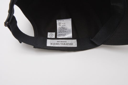 LE×KIJIMA TAKAYUKIのキャップはレショップというクローゼットにとって、普遍的な存在だ。今シーズンで、6回目のリリース。記号的なディテールはなく、とことんシンプル。だが、その形状や作りは、一般的なキャップとは全く異なる。鍔をわずかに長くし、頭の曲線に沿うように傾斜の微調整を行った。1番のポイントは、着用時の安定感。頭の周りをぐるりと一周するように入ったアジャスタブルウェービングテープが、補強材としてもバックルとしても機能することで、余分な生地の重なりや段差がなくなり、抜群のフィット感が生まれた。とあるアウトドアブランドのキャップから着想を得たこの構造は、シンプルだけれど理にかなった、他にはない特徴だ。