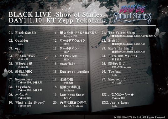 株式会社DONUTS(東京都渋谷区、代表取締役:西村啓成、以下:DONUTS)は、ワルメン応援&リズムゲーム『ブラックスター -Theater Starless-』(略称:ブラスタ)の2026年新年ライブ「BLACK LIVE -Show of Starless-」を、2026年1月10日(土)、11日(日)の2日間、KT Zepp Yokohamaにて開催いたしました。