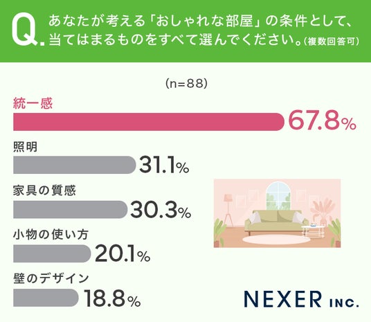 ■「おしゃれな部屋」の条件、67.8%が「統一感」と回答
