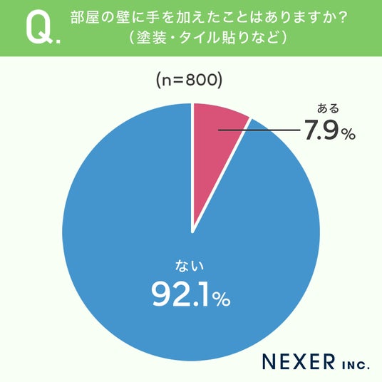 7.9%の方が、部屋の壁に手を加えたことが「ある」と回答しています。