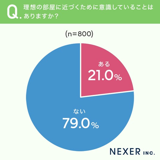 21%の方が、理想の部屋に近づくために意識していることが「ある」と回答しています。