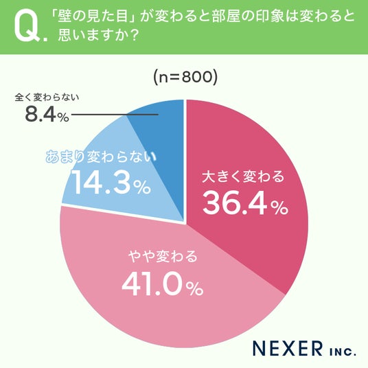 また、「壁の見た目」が変わると部屋の印象は変わると思うか聞いてみました。