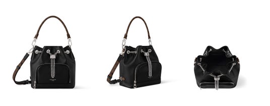 「ノーウェイ・バイブ」は、アイコニックなバッグ「ノエ」のスタイルから着想を得たモダンなデザインに、ロック風のテイストを加えています。ラムレザーを使用し、開口部の調節と装飾的な要素を兼ね備えたグライディング式LV サークルをはじめとするシルバーカラーの金具をあしらいました。フロントのファスナー式ポケットには鍵や化粧品類を収納できます。